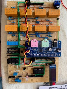 With 8 relays on the audio board and 7 relays for the volume control, an integrated driver solution was chosen. This is based on the ULM2808 Darlington driver and PCF8754 I2C demultiplexer. This significantly reduced the component count to access all the relays via I2C. The main OLED is interfaced by the SPI bus and a test OLED based on i2c was also installed on the volume board for testing purposes. The remaining controls were connected directly (or via transistor buffers) to GPIO pins for power on/off detect, rotary encoder switches (all RC buffered), headphones detect, IR sensor and power-off control.